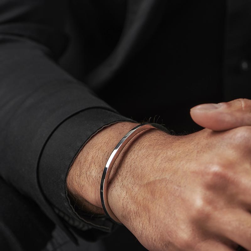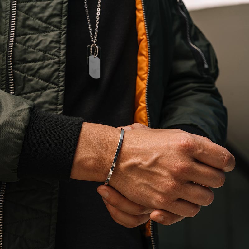 دستبند بنگل مردانه استیل نقره ای