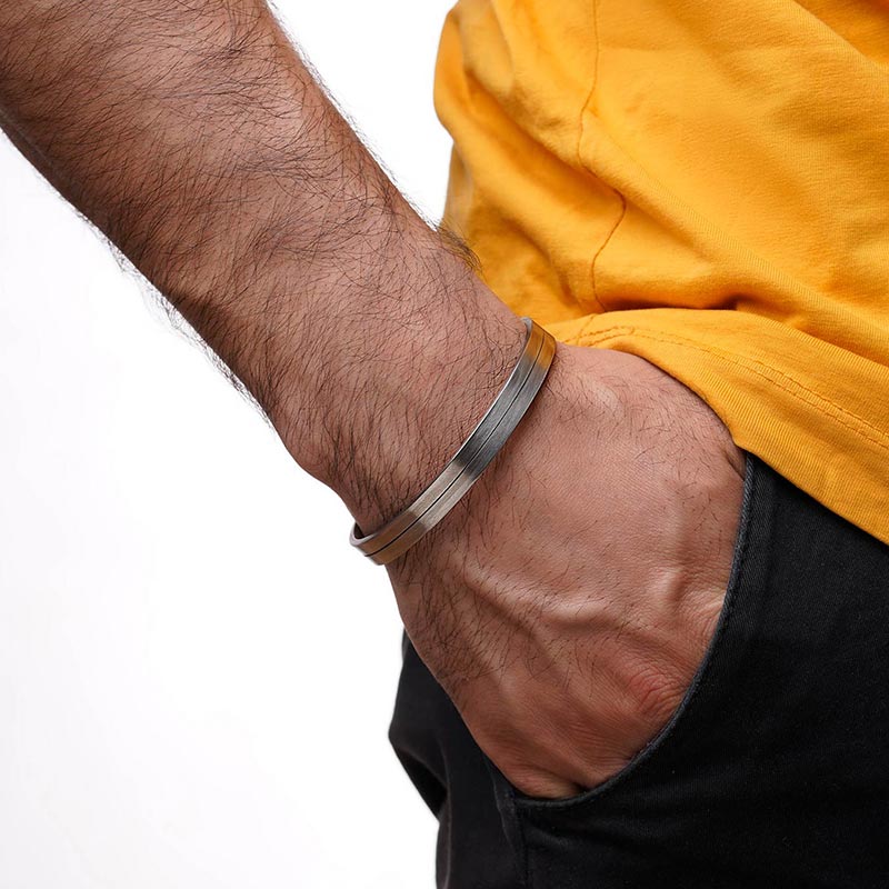 دستبند بنگل مردانه استیل نقره ای